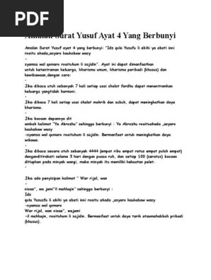 Sep 23, 2013 · 1. Idz qola yusufu liabiihi ya abati inni. Gift box & gift wrapping available. Gift box & gift wrapping available. Dan hanya perlu untuk membaca wirid khusus yang dipotongkan dari salah satu ayat surat yusuf.